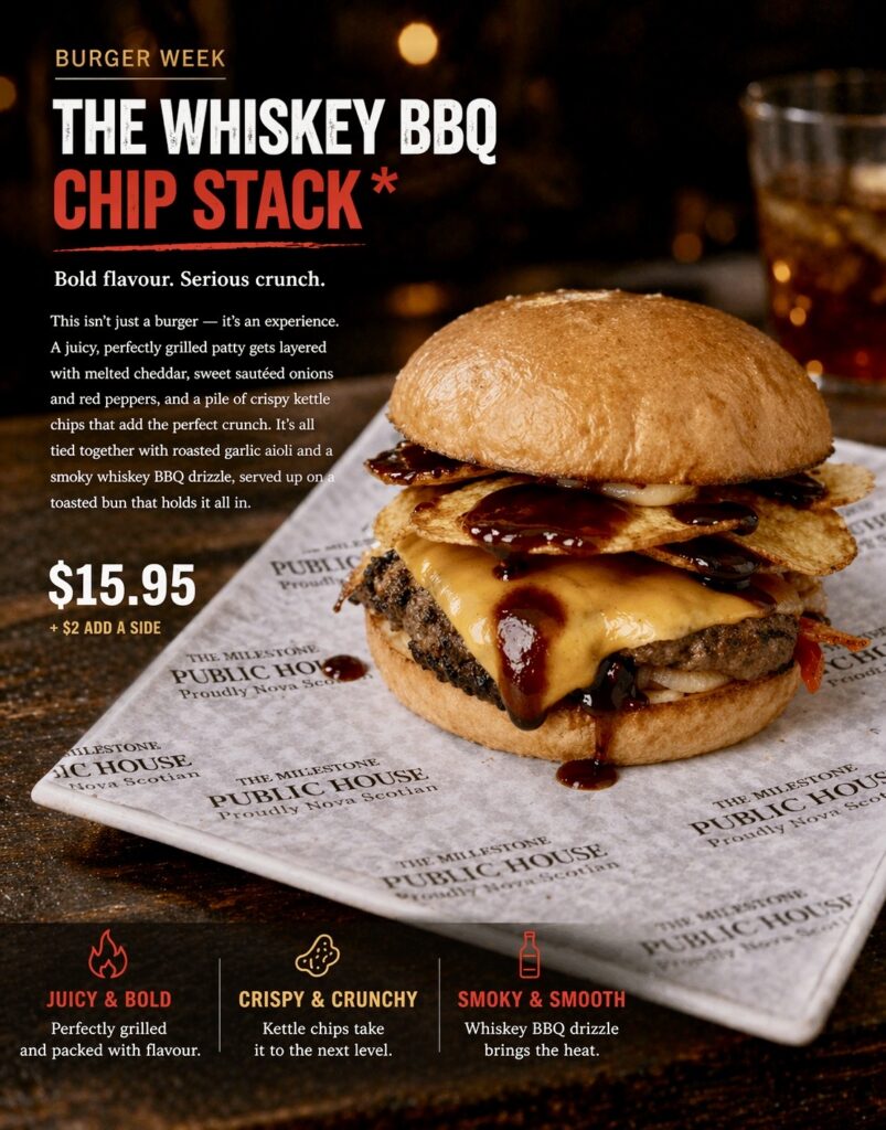We are OPEN for dine in and Take out! Come join us and treat your dad to a Candied Bacon Burger and a Cold Local Brew. Full menu at www.millstonepublichouse.com